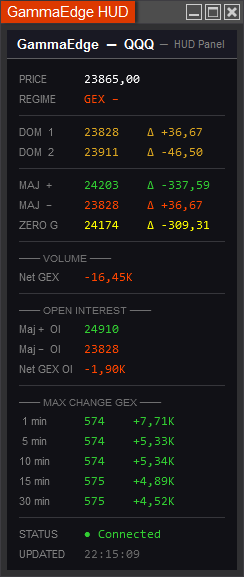 GammaEdge HUD — Ventana independiente informativa que trae la información del OI.